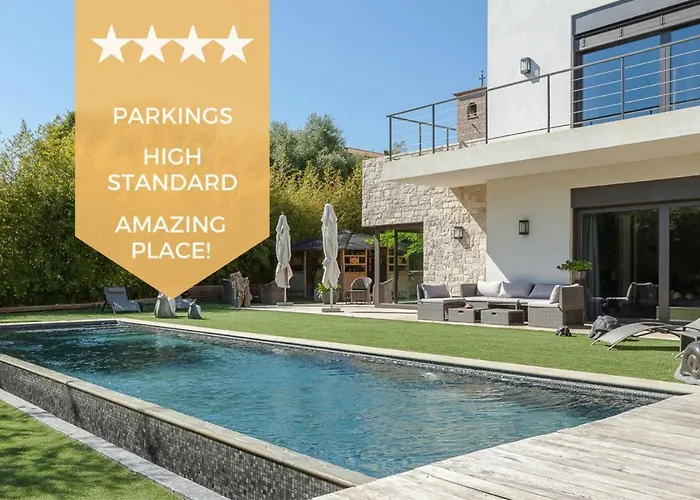 Villa In Juan-Les-Pins With Heated Pool está localizada a uma distância de 10 minutos de carro de Château Grimaldi, dando acesso a vários pontos turísticos próximos. Esta pousada proporciona aos hóspedes uma experiência relaxante com solário.